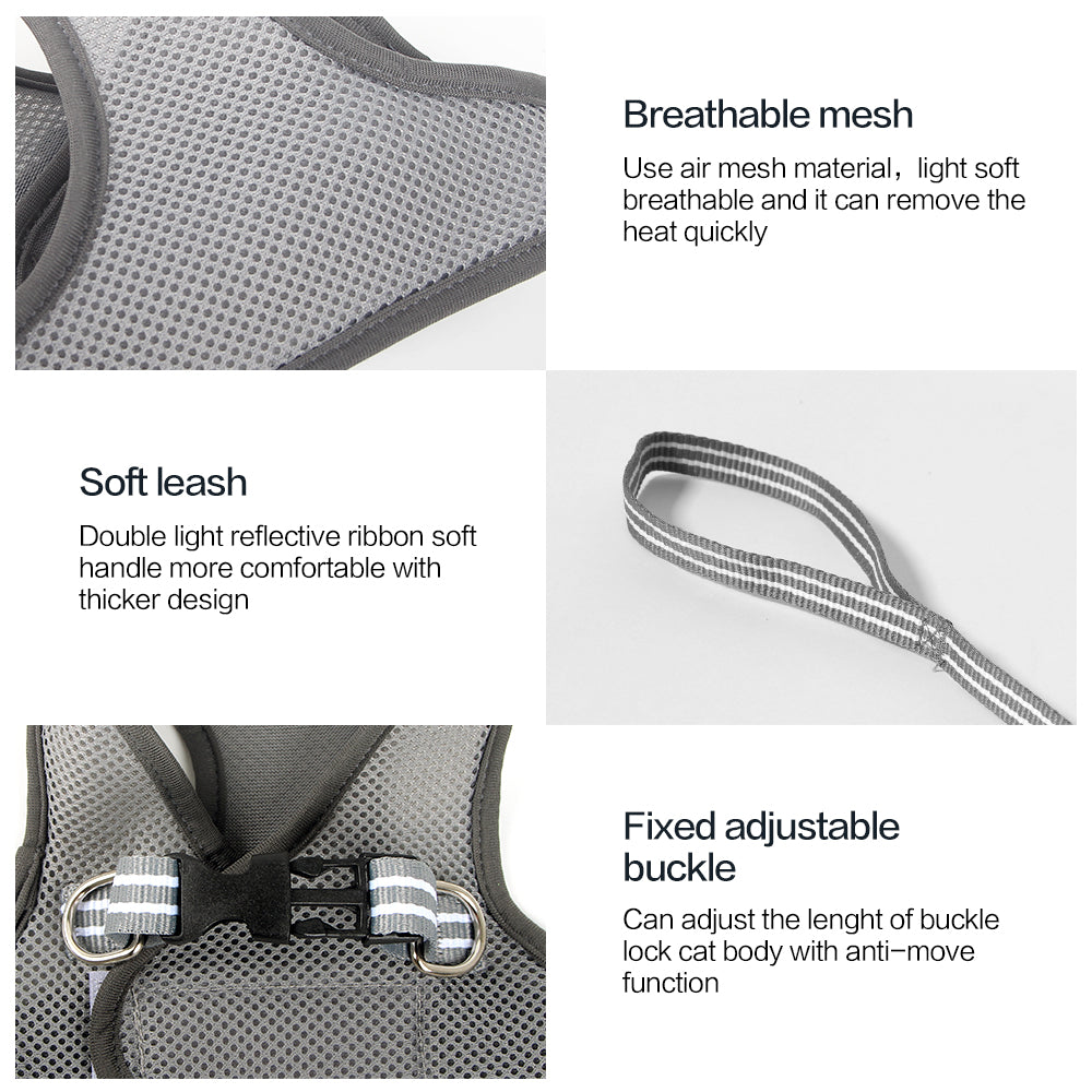 Cat Harness and Leash - Ultra Light Escape Proof Kitten Collar Cat Walking Jacket with Running Cushioning Soft and Comfortable Suitable for Puppies Rabbits